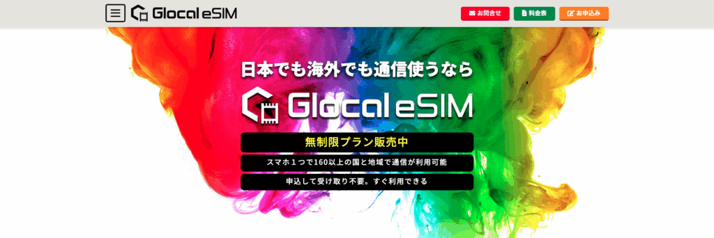 Glocal eSIMは、東京都目黒区に本社を構える株式会社グローカルネットが提供するeSIMサービスです。無制限データプランが充実しており、特に地図アプリや動画視聴など、データ通信量が多いユーザーにとって最適な選択肢です。日本国内で提供されているため、日本語サポートが充実しており、初めてeSIMを利用する方にも安心です。