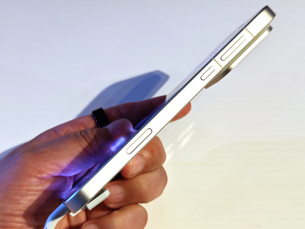 左側面にはFind X9 Proと同じスナップキーを搭載。右側面にはカメラボタンはありません。とはいえ本体サイズがFind X9 Proより1周り小さいので、カメラ使用時も画面内のタッチ操作で十分対応できるでしょう。