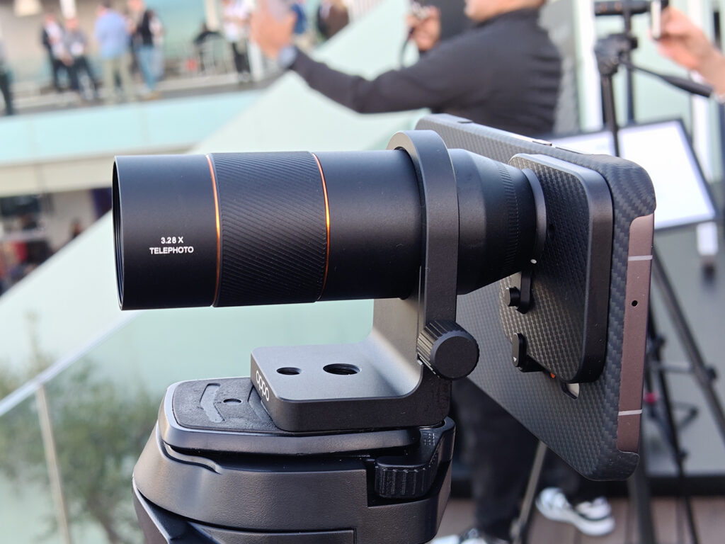 Find X9 Proから細長いレンズが飛び出すハッセルブラッドのカメラキットは光学3.2倍の性能を持ちます。なおレンズは専用ケースと共に販売され、取り付けはワンタッチ。