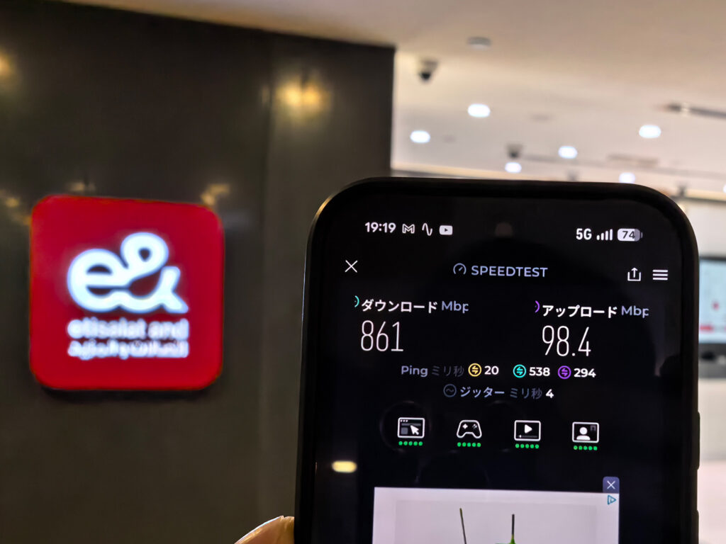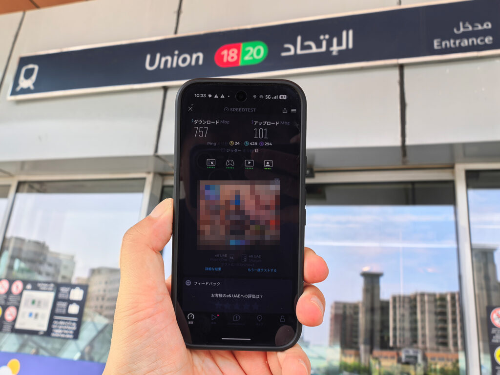 ドバイのダウンタウン、Union駅付近でも700Mbpをオーバー。かなり快適でした。ドバイメトロの地下の駅構内でLTEに落ちることもありましたが、50Mbps前後と十分な速度でした。