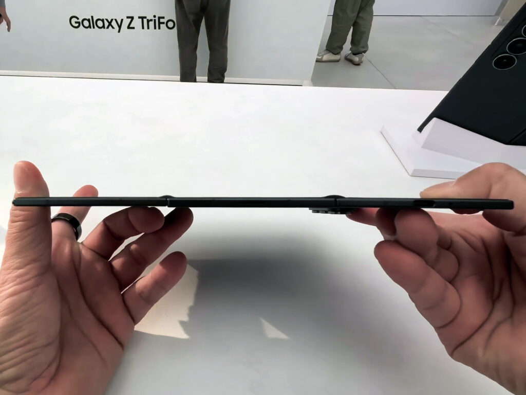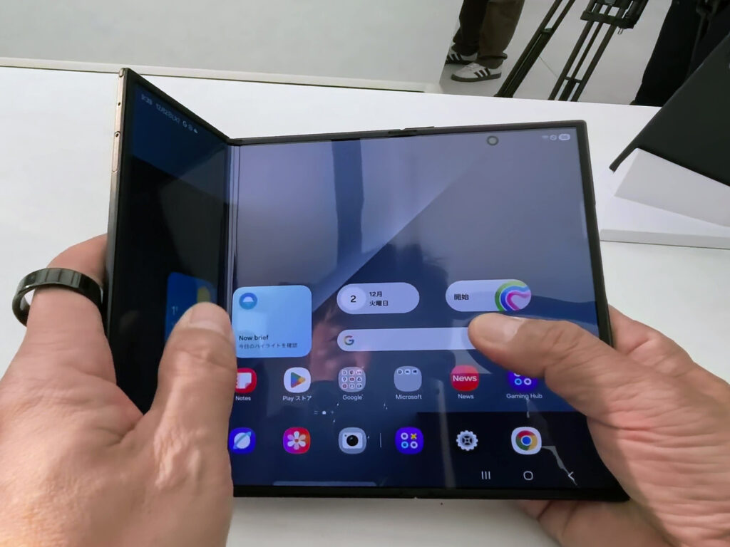 Galaxy Z TriFoldの最大の利点は10インチタブレットを普段は折りたたんでポケットに入れて持ち運べることです。本製品のネット上の反応を見ると「これはすばらしい」という意見とは反対に、「タブレットを持てばいい」という意見も見られます。しかし手ぶら姿で出かける際、10インチのタブレットを持ち運ぶのは現実的でhありません。Galaxy Z TriFoldは片手でも楽に持ち運びできるのです。