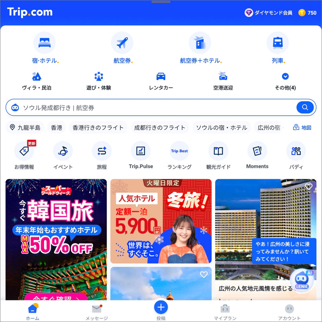 海外旅行の航空券やホテルの予約サービスは様々なものがあります。筆者は目的に応じて使い分けますが、特に中国に行く時はTrip.comを使います。欧米系のサービスでは出てこない中国国内のホテルや、予約した飛行機に乗るときに当日の細かい情報が見れるなどなかなか便利。また飛行機やホテルだけではなく中国や一部の国の高速鉄道のチケットや、eSIMを買うこともできます。