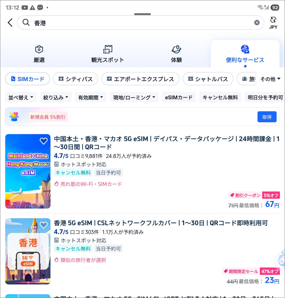 旅行の計画だけではなく現地回線までも購入できるのは便利です。今後はTrip.com以外にも自社ブランドのeSIMを発行する旅行サービスが増えてくるでしょう。