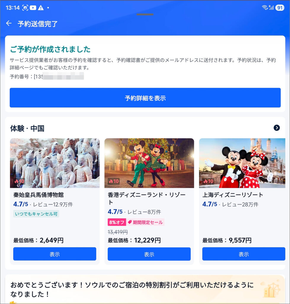 旅行商品と同じ扱いなのですぐに「予約されました」とのページが表示されます。