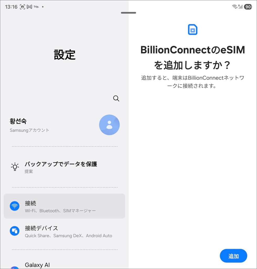 eSIMインストール時、今回購入したものはグローバルeSIMプロバイダのBillion ConnectのeSIMであることがわかります。同社のeSIMは過去に直接購入して上海で使ったことがあります。